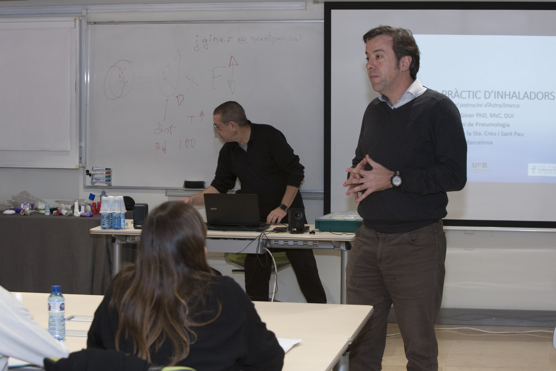 Vallès també ha volgut destacar el caràcter pràctic del curs: “L’infermer Jordi Giner, del Servei de Pneumologia de l’Hospital de la Santa Creu i Sant Pau, d’una manera molt didàctica, ens ha ensenyat els 5 passos clau que cal saber per fer un ús correcte de l’inhalador i que són comuns per a qualsevol dispositiu. A partir d’aquí, en el taller hem pogut veure, utilitzar i manipular tots els dispositius que hi ha actualment al mercat de forma molt amena i sota la direcció experta de Jordi Giner. En definitiva, el taller pràctic d’inhaladors val molt la pena que el facin tots els farmacèutics clínics, ja que sempre s’aprenen coses noves sobre aquests aparells”.